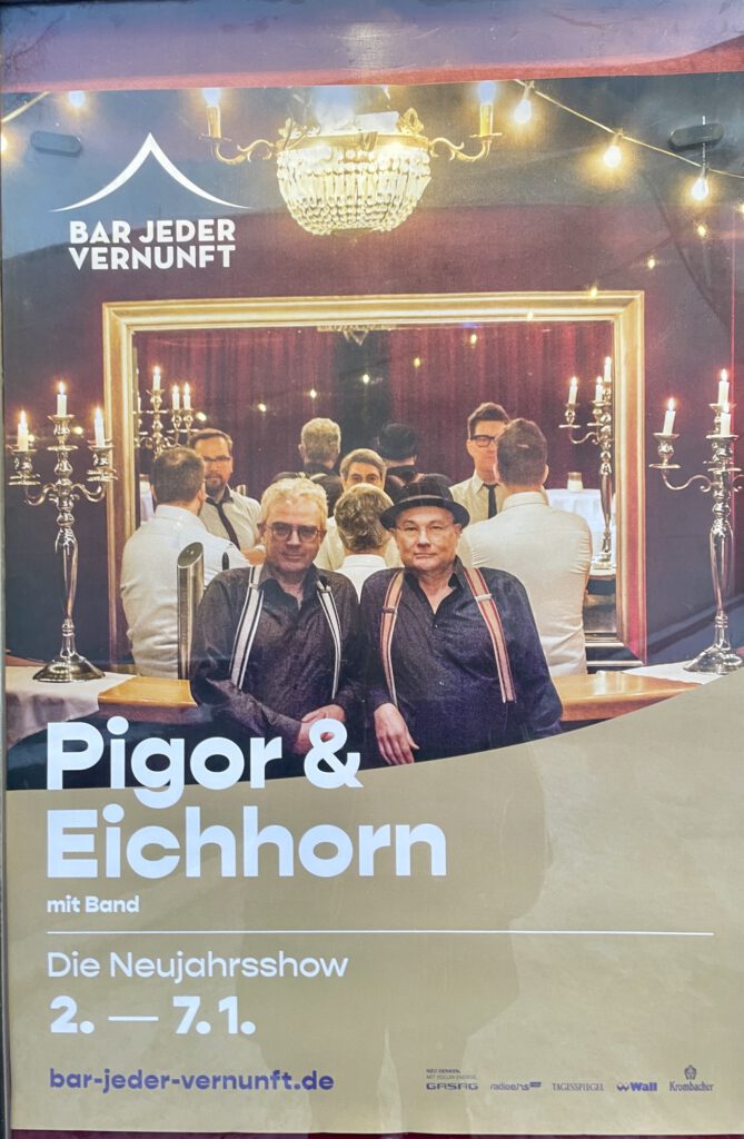 Schon zum 10. Mal spielten Björn Werra, Jan-Peter Eckelmann und ich die Neujahrskonzerte mit Pigor & Eichhorn – dieses Jahr in der Bar jeder Vernunft.